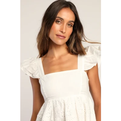 Pristine Presence Ivory Plisse High-Waisted Wide-Leg Pants